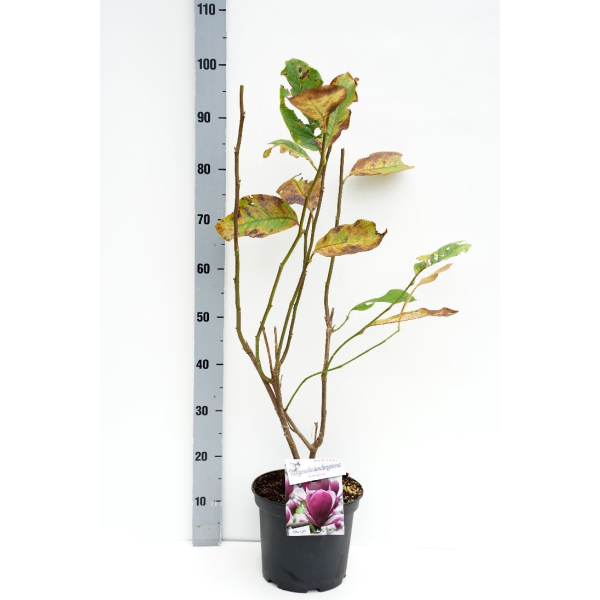 Magnolija ‘Susan’ – viena populiariausių magnolijų veislių dėl kompaktiško augimo ir įspūdingų, tamsiai purpurinių, taurės formos žiedų. Žiedai stambūs, kvapnūs, pražysta anksti – dar prieš visiškai išsiskleidžiant lapams. Lapai elipsiški, tamsiai žali, vainikas tankus ir elegantiškas. Parduodama 4 litrų vazone (C4).