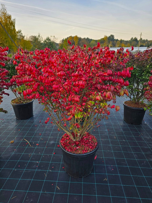 Ožekšnis sparnuotasis (Lot. Euonymus alatus) ‘Compactus’ – išskirtinai dekoratyvus, kompaktiškas, tačiau galingas krūmas, kuris rudenį pasipuošia intensyvia ugnine raudona spalva. Dėl šio įspūdingo spalvų virsmo jis dar vadinamas „degančiu krūmu“. Vasarą lapai žali, rudenį – ugniniai, o žiemą išryškėja unikalios sparnuotos šakos, suteikiančios augalui išskirtinę formą ir tekstūrą. Šis augalas parduodamas dideliame 55 litrų vazone (C55) – jau pilnai išaugęs, pasiruošęs sukurti greitą vizualinį efektą sode.
